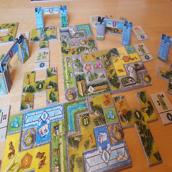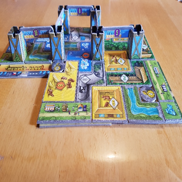 Die neue Erweiterung Die Grizzlys sind los von Phil Walker-Harding bietet drei neue Module für das Grundspiel Bärenpark. Die neue Bärenart benötigt noch mehr Platz als die bereits bekannten und macht das Puzzeln damit etwas anspruchsvoller. Damit dem Park aber nicht der Platz ausgeht, hat die Stadt ein weiteres Gelände bewilligt. Es werden in der Erweiterung also bis zu fünf Gelände vollgepuzzelt. Außerdem gibt es die neue Hochbahn, mit der die Besucher einen noch besseren Einblick in die Welt der Bären bekommen. Und das ganz ohne die Bären zu stören. Letztlich gibt es natürlich auch noch neue Auftragsplättchen, die einiges an Puzzelgeschick erfordern. Es wird also viel geboten, sowohl für Neueinsteiger als auch für alte Hasen.