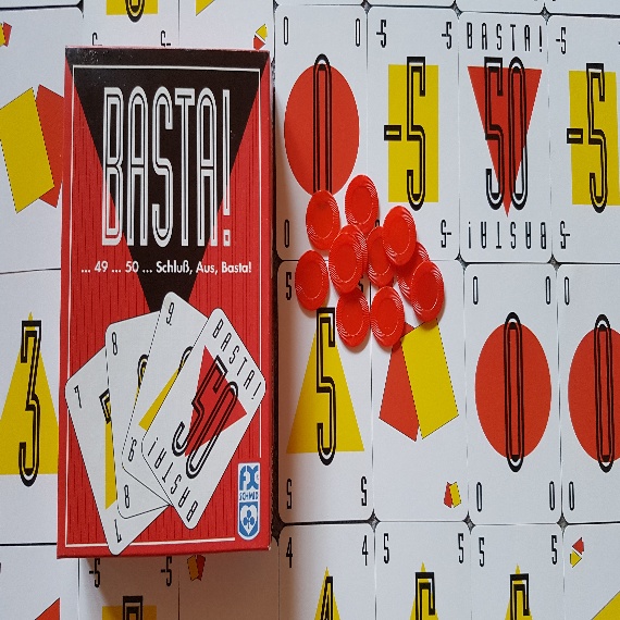 ..38... und eine Fünf sind 43... und eine Sieben sind 50... - und jetzt ist Schluß, Aus, Basta! Niemand darf über 50 Punkte kommen! Also aufgepaßt und lieber eine der vielen besonderen Aktionskarten gespielt, die für Abwechslung und Spannung sorgen.