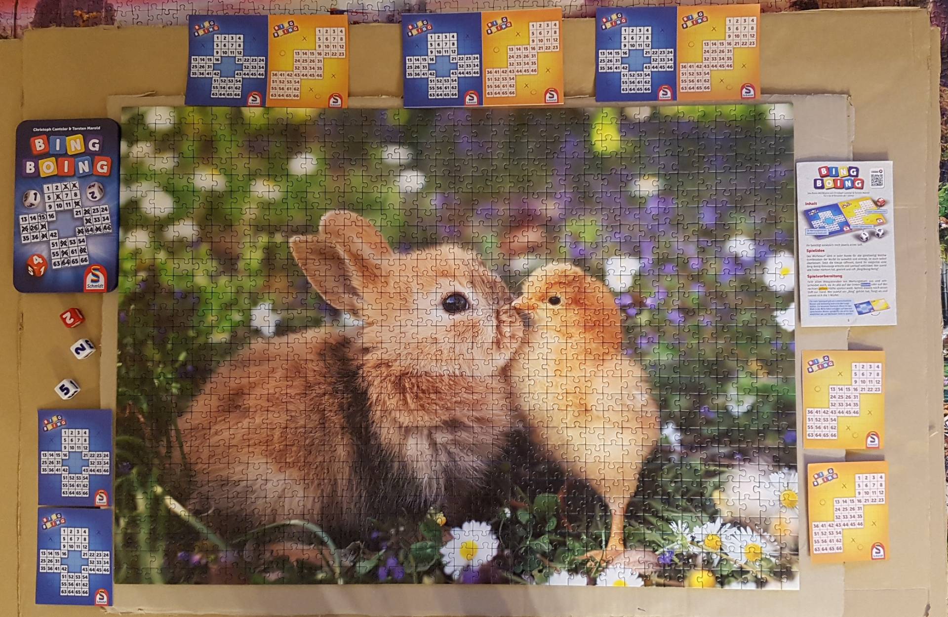 Bei diesem flotten Spiel kommt keine Langweile auf! Alle nutzen den gleichen Würfelwurf und kreuzen doch unterschiedliche Zahlenkombinationen auf ihrem Blatt an. Der “Boing”-Bonus bringt große Freude, und wer alle Zahlenfelder zuerst markiert hat und Bing-Boing-Fertig ruft, gewinnt!