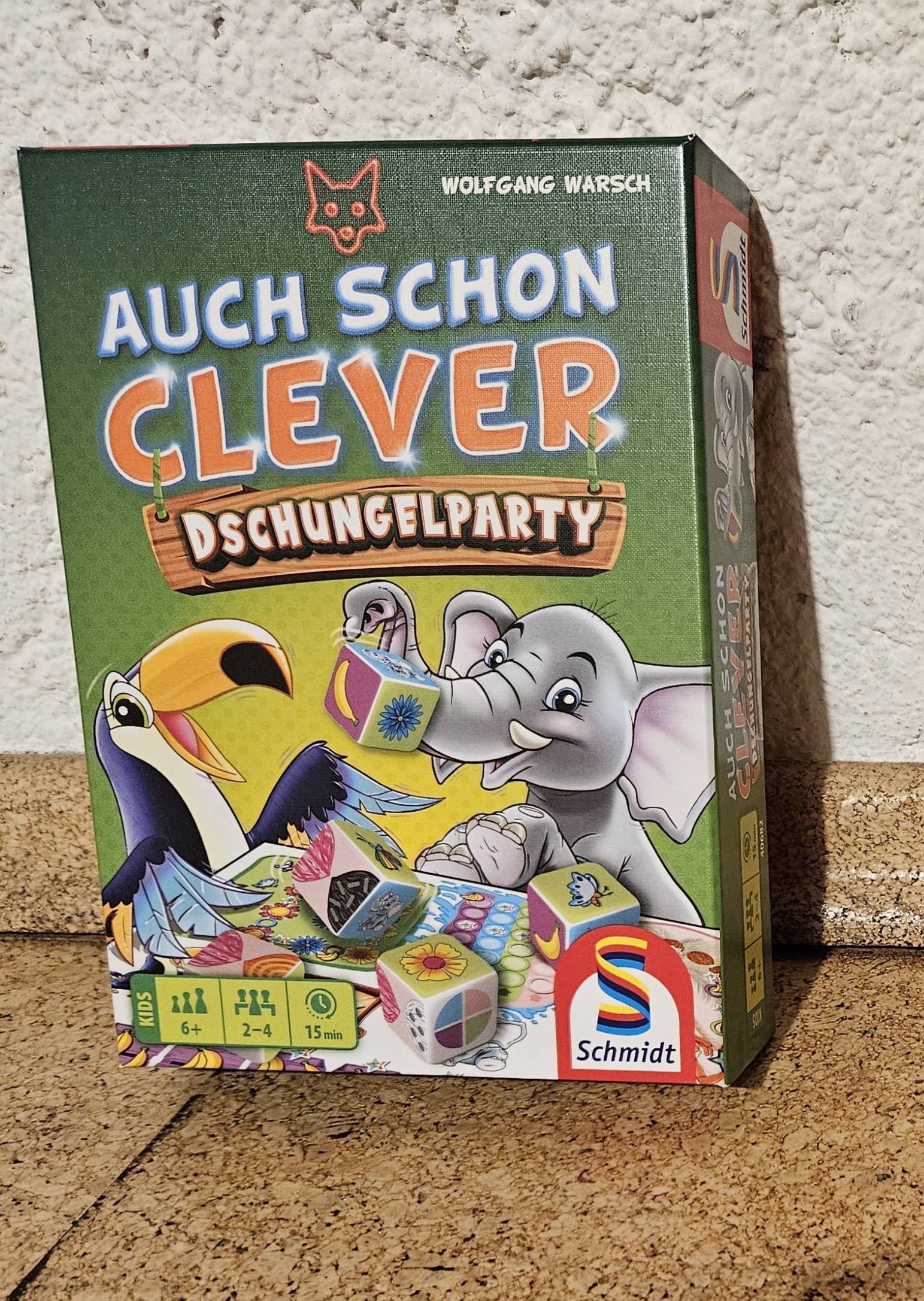 Für AUCH-SCHON-CLEVER-Fans und alle, die es werden wollen. Im Dschungel ist so einiges los! Schmetterlingstanz, Kokosnüsse jonglieren, Bananen pflücken und zu guter Letzt sprüht der Elefant noch eine bunte Wasserfontäne. Würfelt, kreuzt die Symbole clever an und ergattert Regenbogensterne und im besten Fall Zusatzzüge. Alle übrigen Würfel dürfen die Mitspielenden verwenden. So sind alle immer dabei und niemand muss lange warten.