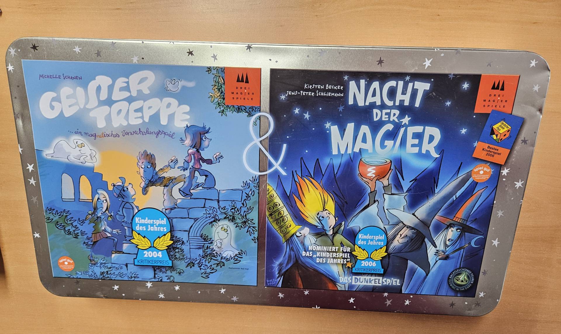 Wunderschönes Geschicklichkeitsspiel, dass seine tolle Atmosphäre besonders entfaltet, wenn es im Dunklen gespielt wird. Denn sowohl die Magier als auch deren Zauberkessel leuchten im Dunkeln.