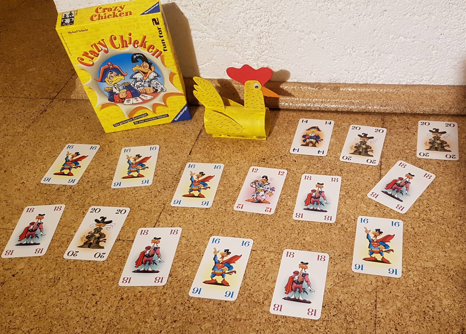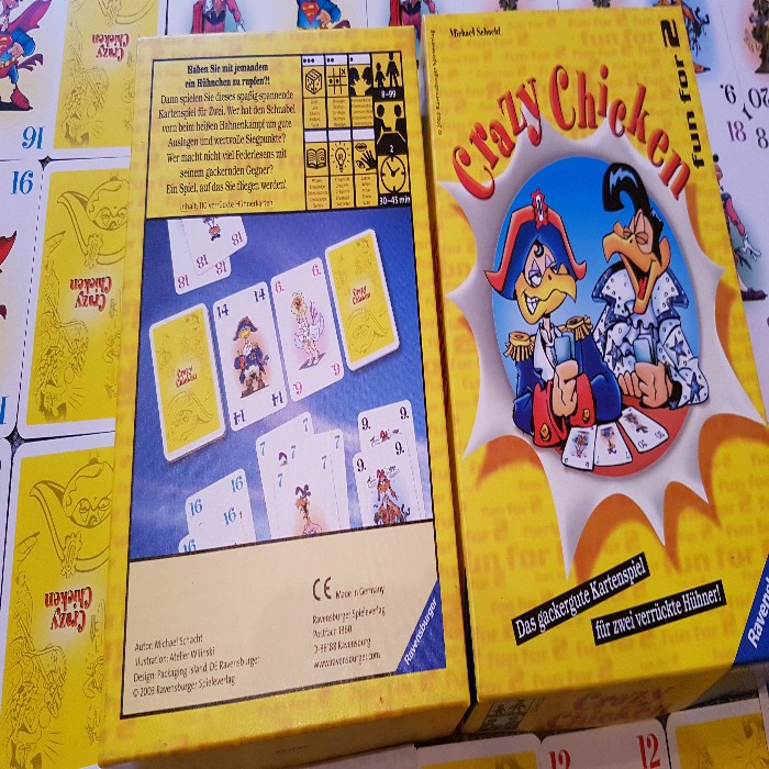 Dann spielen Sie dieses spaßig-spannende Kartenspiel für Zwei. Wer hat den Schnabel vorn beim heißen Hahnenkampf um gute Auslagen und wertvolle Siegpunkte? Wer macht nicht viel Federlesens mit seinem gackernden Gegner? Ein Spiel, auf das Sie fliegen werden.“
