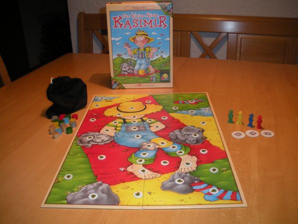 Man versucht den Riesen Kasimir zu befreien, der mit Pflöcken befestigt ist. Diese Pflöcke haben verschiedene Werte und wer am meisten hilft und die meisten Punkte sammelt gewinnt!