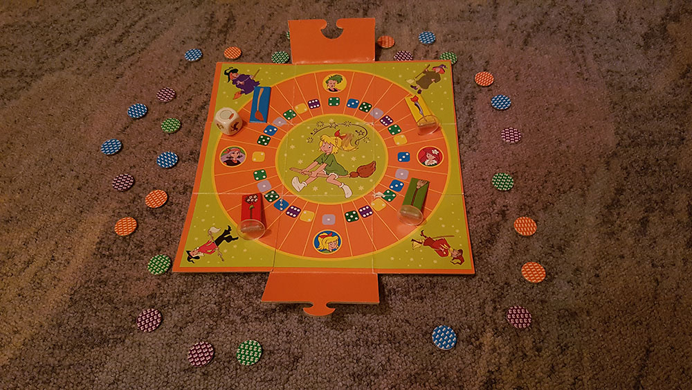 Bibi Blocksberg und ihre 3 Hexenfreundinnen müssen nachsitzen: Die Schulstunde "Hexen-Einmaleins" war leider nicht so erfolgreich. Also müssen sie üben. Dazu müssen sie erst einmal Chips sammeln. Wer sie meisten Punkte sammelt, ist Sieger.