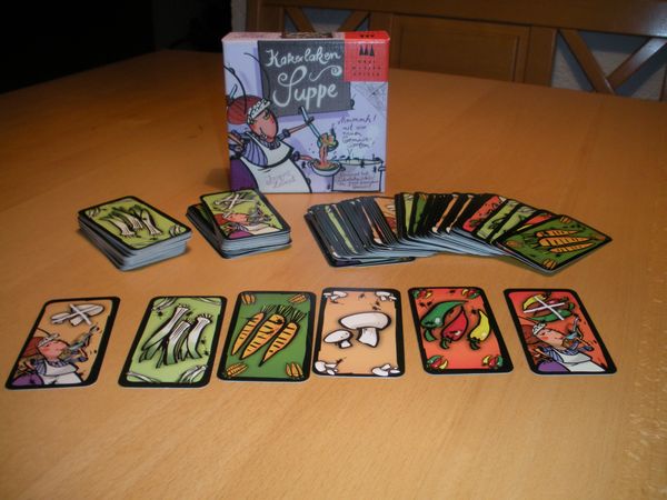 Dann löffelt mal schön die Suppe aus, die man euch hier einbrockt. Schärfer gewürzt durch weitere Zutaten, gilt es hier, die Zunge unter Kontrolle zu halten. Versprecher sind dabei versprochen. Ein kurzweiliges Spiel für die ganze Familie. Ein eigenständiges Spiel, das auch als Erweiterung zu Kakerlakensalat verwendet werden kann.