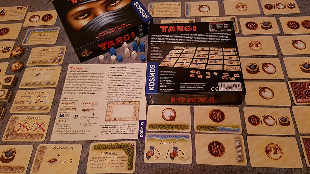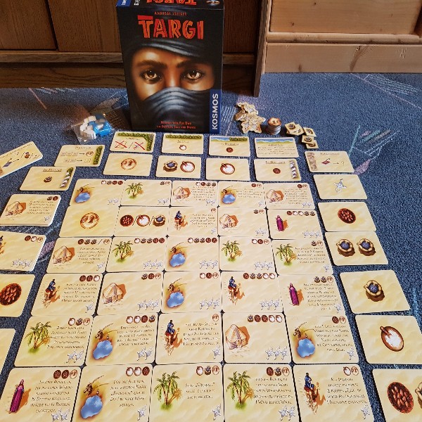 Alles liegt offen aus. Wo soll man seine Tuareg-Figuren setzen? Salz braucht man, aber auch Pfeffer. Wenn man nicht zum Händler geht, kann man nicht tauschen. Wie soll man sich entscheiden? Wer zu lange wartet, verpasst die Gelegenheit ein Geschäft zu machen. Nur wer seine Figuren clever platziert, dem Mitspieler im richtigen Moment das Leben schwer macht und die passenden Ausbauten erwirbt, kann gewinnen.