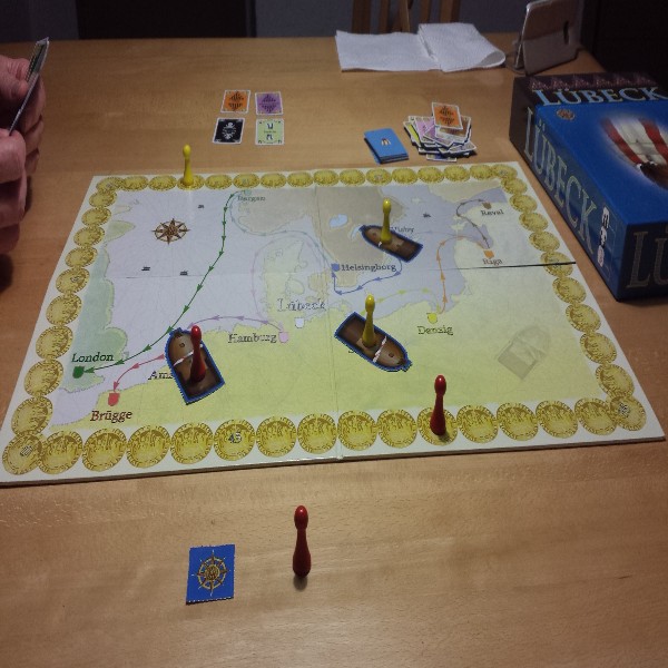 In jeder Runde wählt man reihum Warenkarten aus einer Auslage. Die Waren sind für andere Handelsstädte bestimmt und können nur dort ausgespielt werden. In jeder Runde können die Koggen fortbewegt werden und Warenkarten ausgespielt werden, sofern die Kogge den Bestimmungsort erreicht. Da man nie genau weiß, was die anderen vorhaben, ist es fraglich ist, ob man genügend Warenkarten los wird, denn das Vertrackte ist, dass man am Ende jeder Runde nicht mehr als 3 Karten auf der Hand behalten darf, sonst muss man auf der Wertungsleiste statt vor- zurück ziehen...