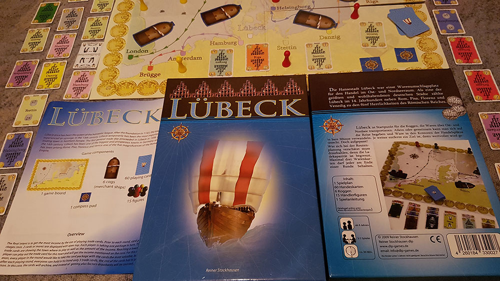 Lübeck ist Mittelpunkt und Ausgangsort in diesem strategischen Familienspiel für 3-5 Spieler ab 8 Jahren. Allein oder gemeinsam startet man in der Hansestadt mit einer Kogge, um Handelsfahrten zu den Gestaden an Ost- und Nordsee zu unternehmen.